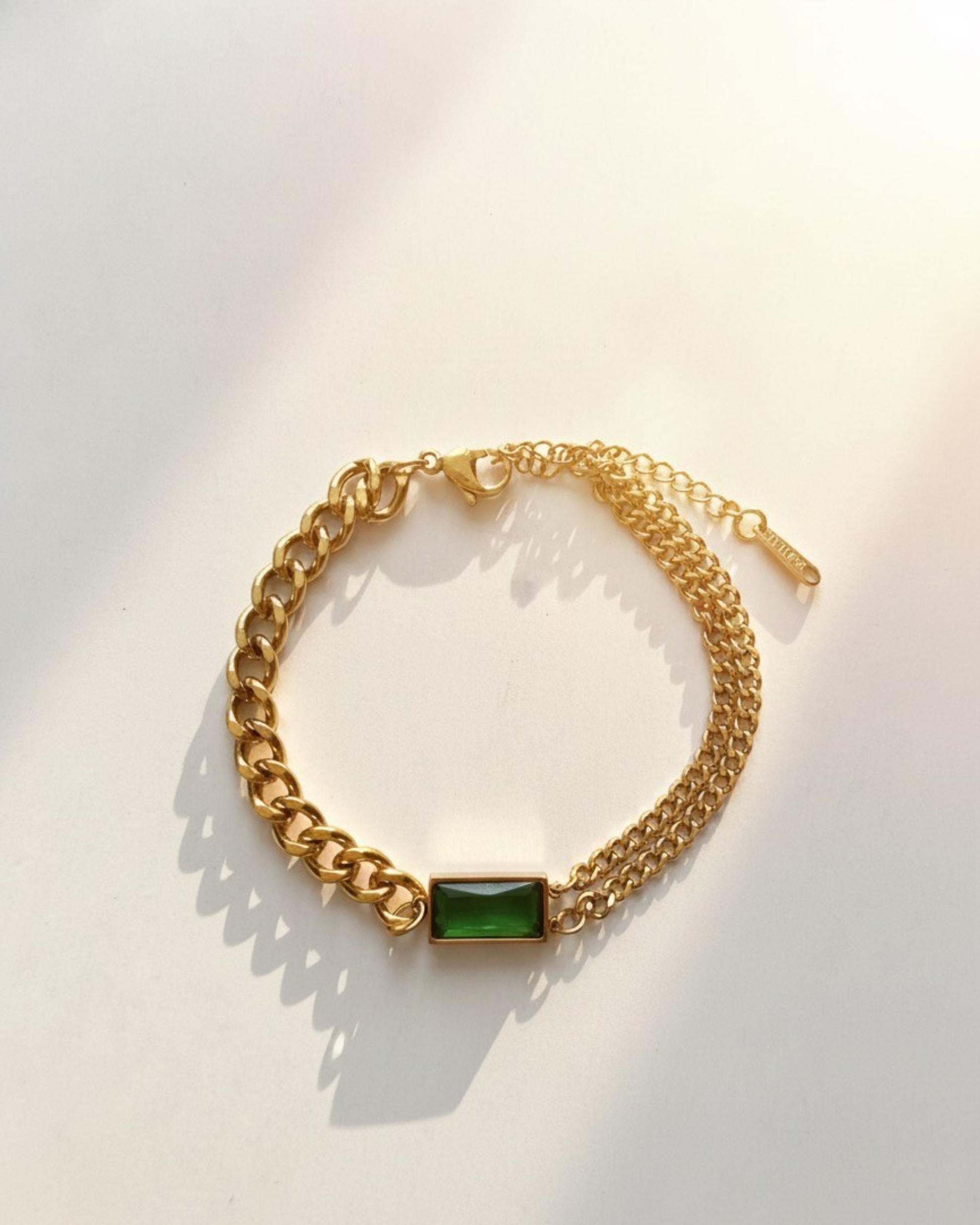 Brazalete CLAIRE en acero inoxidable de alta calidad, diseñado con elegancia contemporánea. Presenta una piedra de simulación de esmeralda que captura la profundidad y brillo característico de esta gema preciosa, ofreciendo un look sofisticado sin comprometer la durabilidad. El acero garantiza resistencia al desgaste diario y mantiene su lustre en el tiempo. Ideal para quienes buscan joyería versátil que combina estética refinada con practicidad. Pieza versátil que complementa tanto looks casuales como formales.